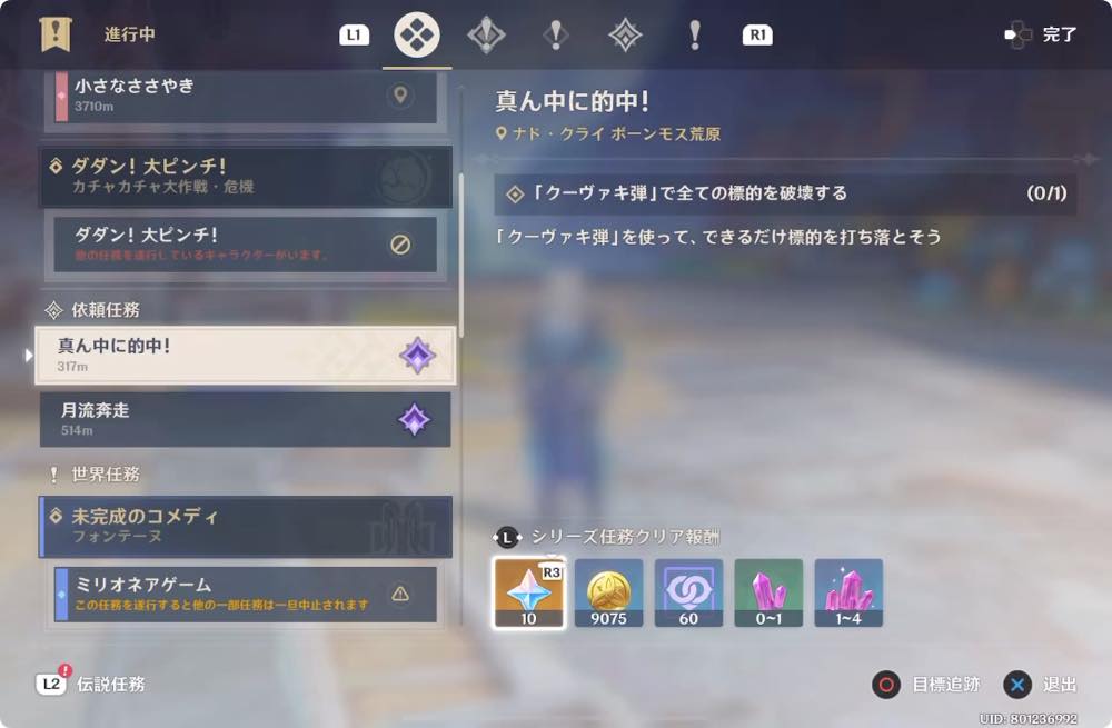 原神のデイリー任務(ナド・クライ) 真ん中に的中! について紹介しています