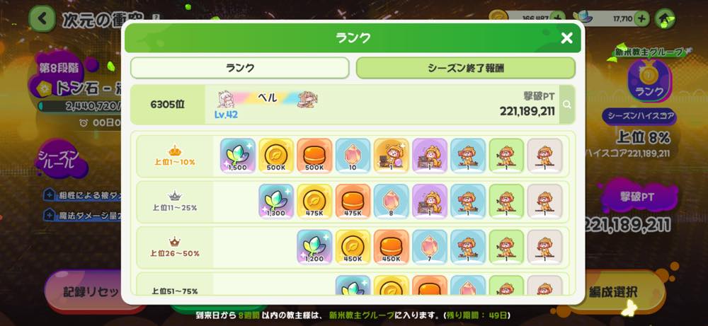 シーズン終了報酬としてランキングに応じて報酬がもらえます。