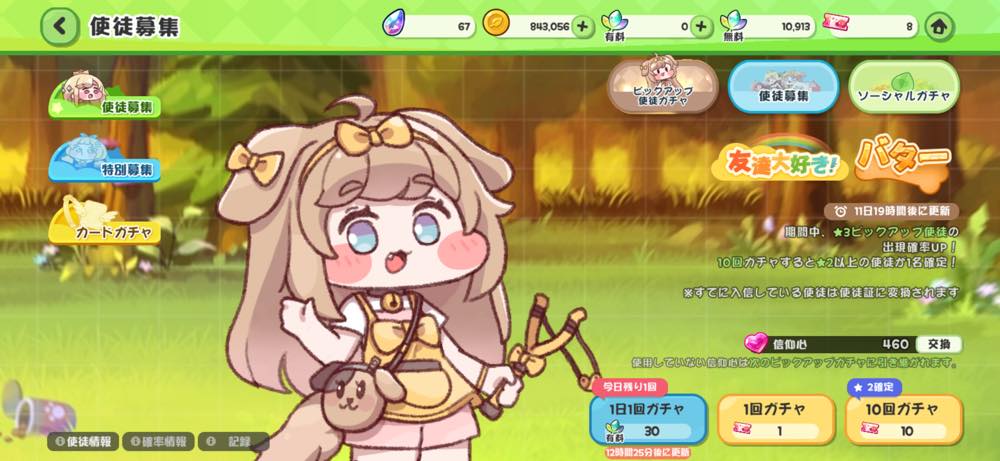 ピックアップガチャは1回まわすと1信仰心貯まります