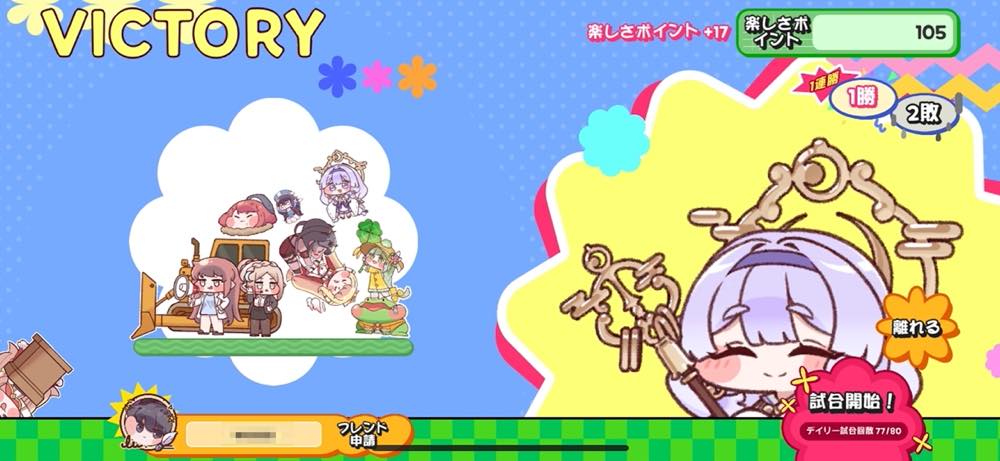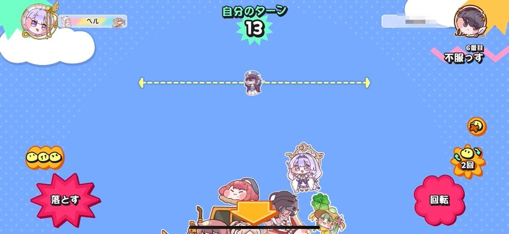 | ⑨ | ![]() 勝利(勝率30%ぐらいです) 相手が落ちてしまうように乗せ方を考えるのが楽しいです |