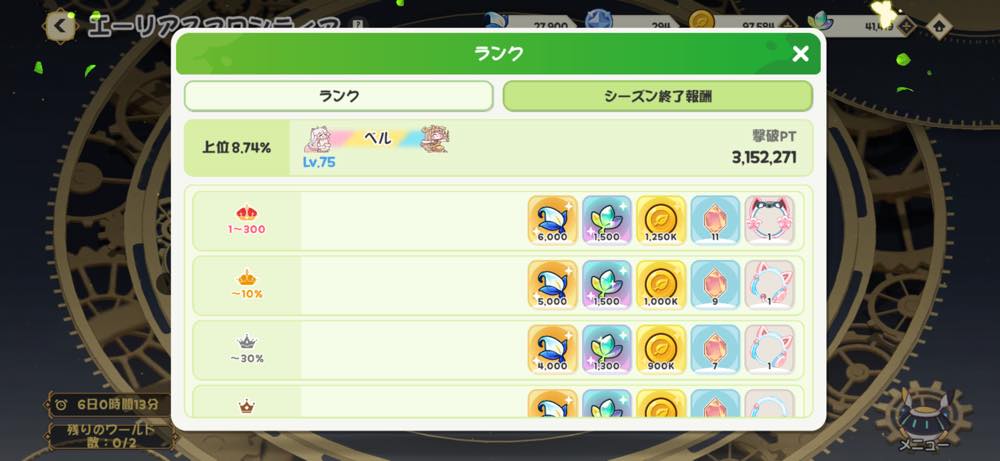 5属性バトルの進み具合で実体コインが増えます