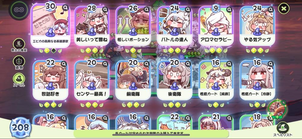 | ② | ![]() 実体コインを使って強化 スキルや遺物をとり使徒を強化しましょう |