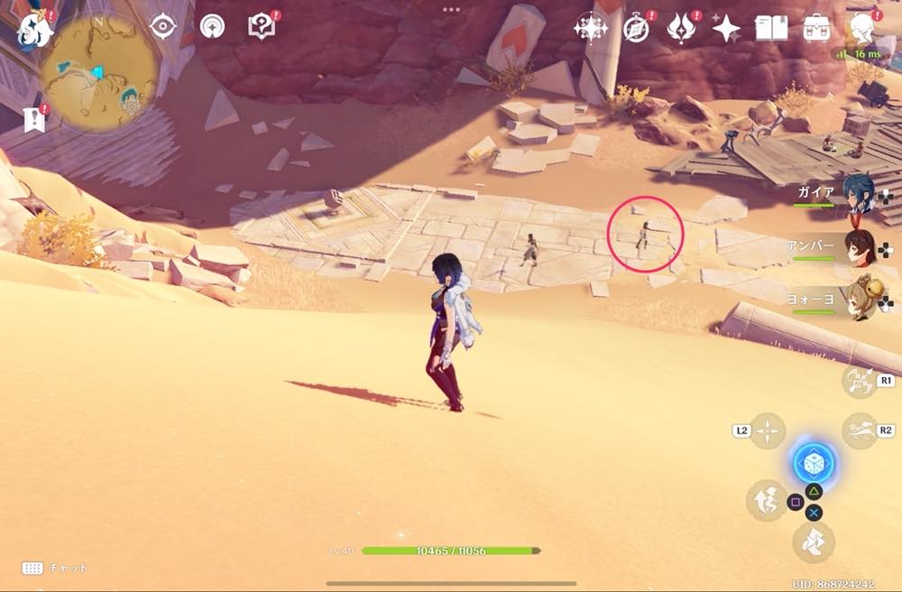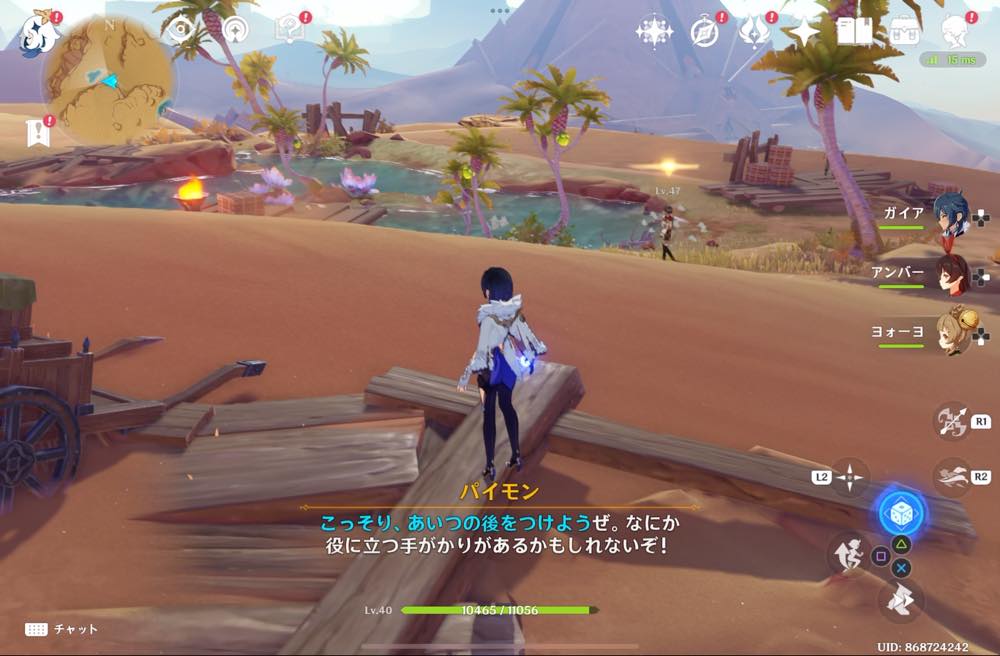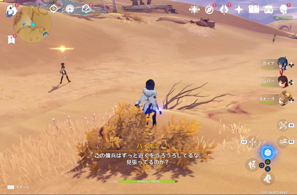 | ⑤ | ![]() 近づくとパイモンが話し出す 距離を取りながらついていく |