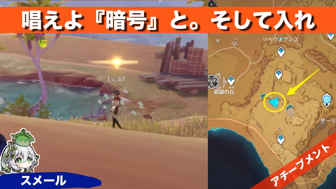 原神のアチーブメント 唱えよ「暗号」と、そして入れ の獲得方法を紹介しています