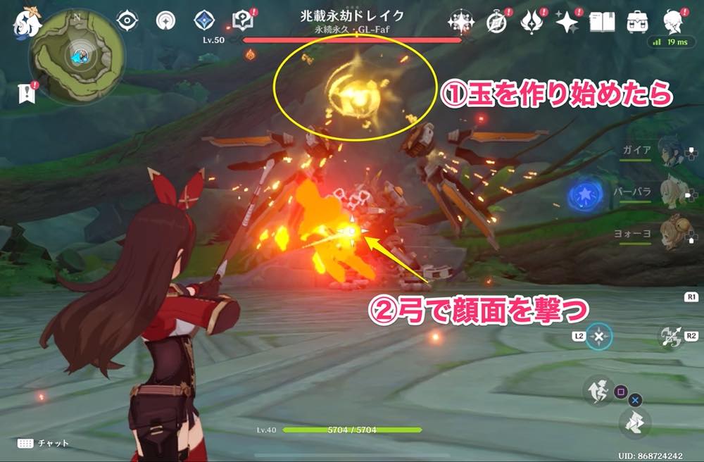 兆載永劫ドレイクが玉を作り始めたら、弓で顔を撃つ