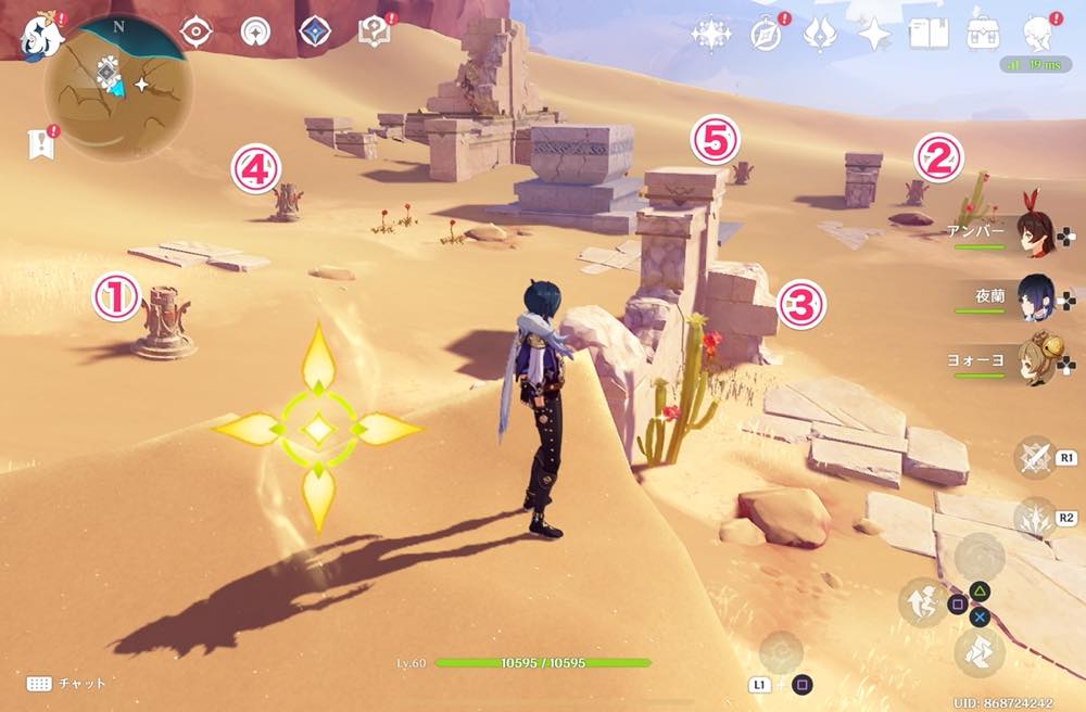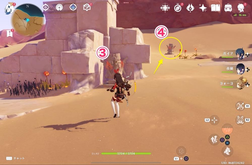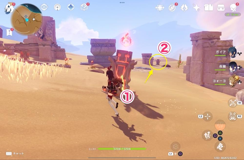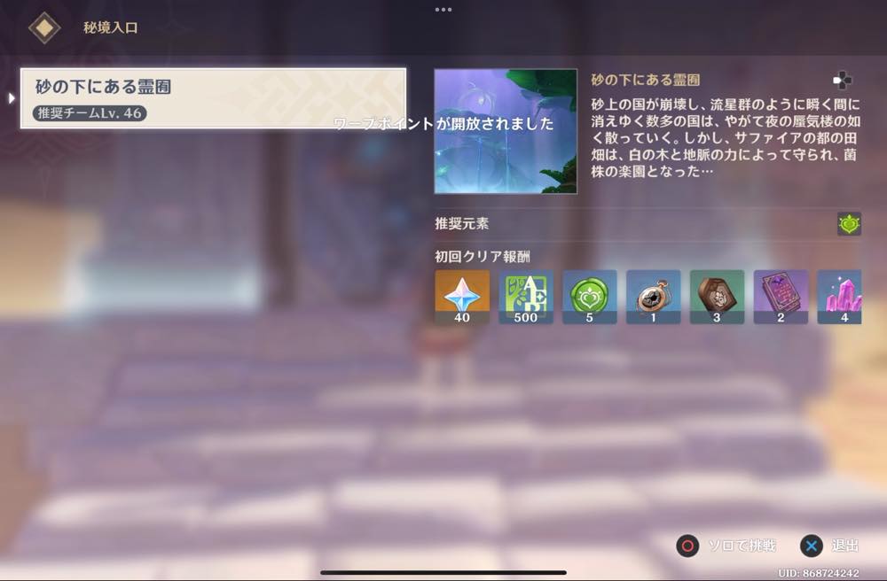 | ⑩ | ![]() 千柱の花園入口で起動し、ワープを解放しておきましょう |