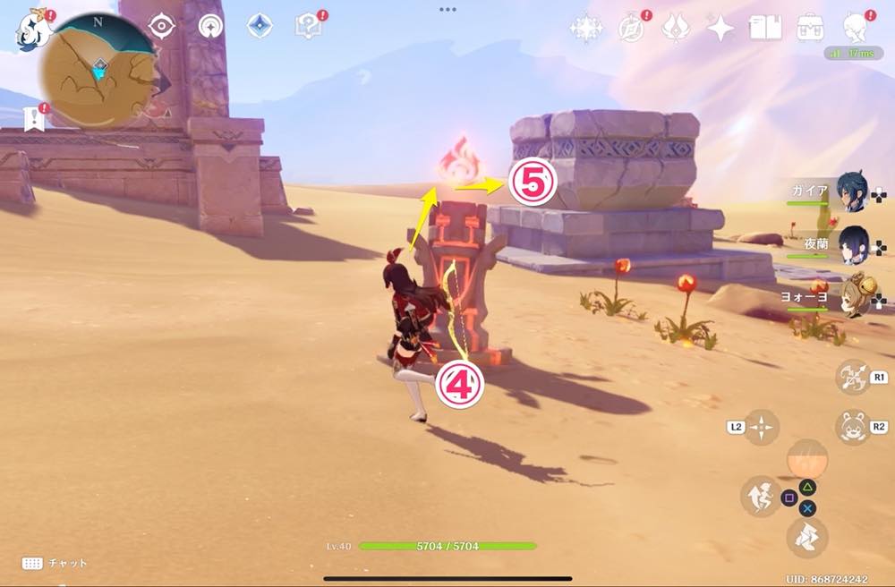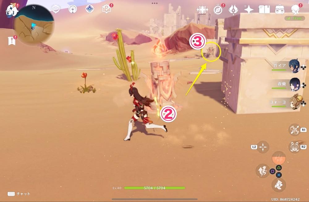| ③ | ![]() 炎元素をつける 1番をつけたら2に向かう |