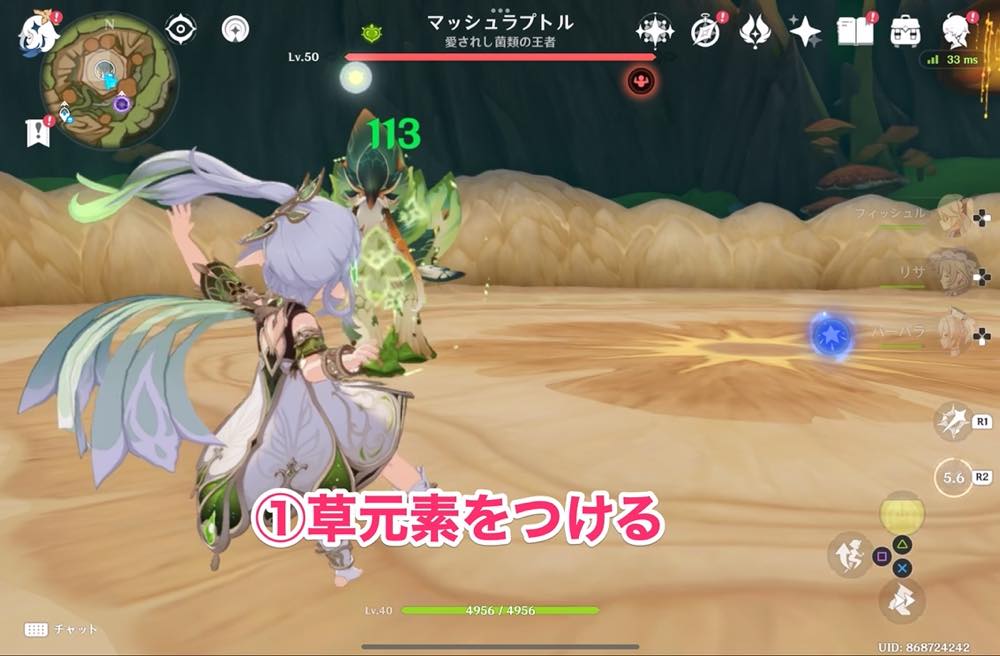 | ⑤ | ![]() 怒らせるために ①草元素をつける |