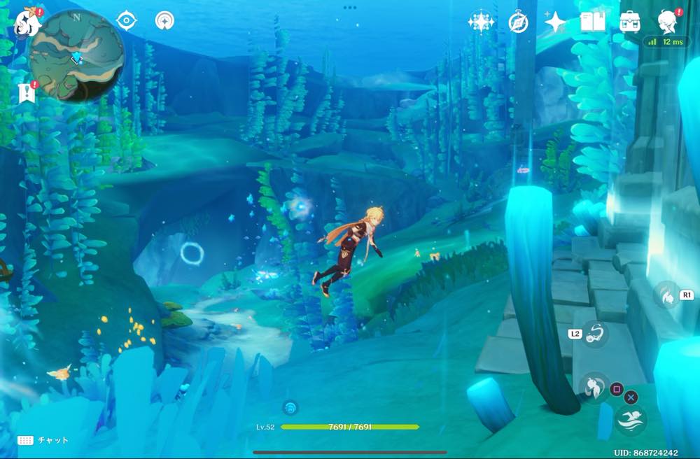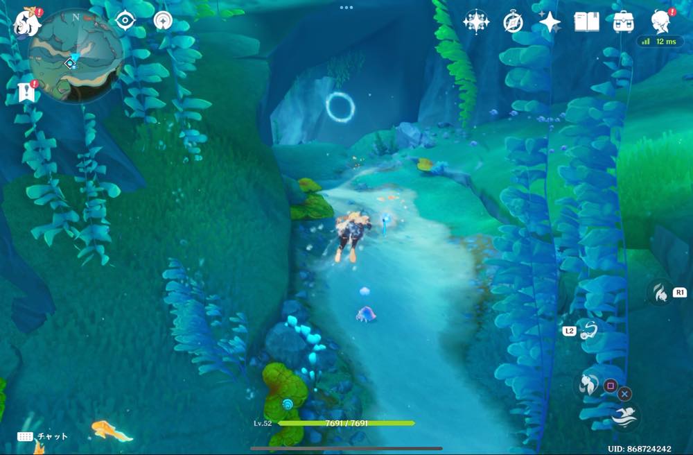 | ③ | ![]() 海底をすすみながら丸い泡の方へ |
