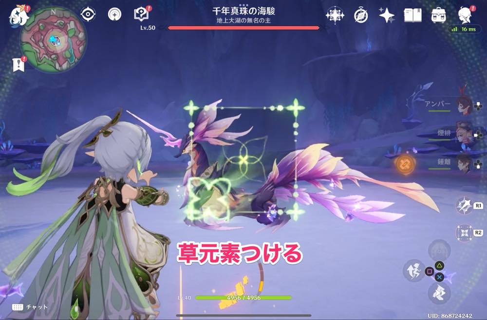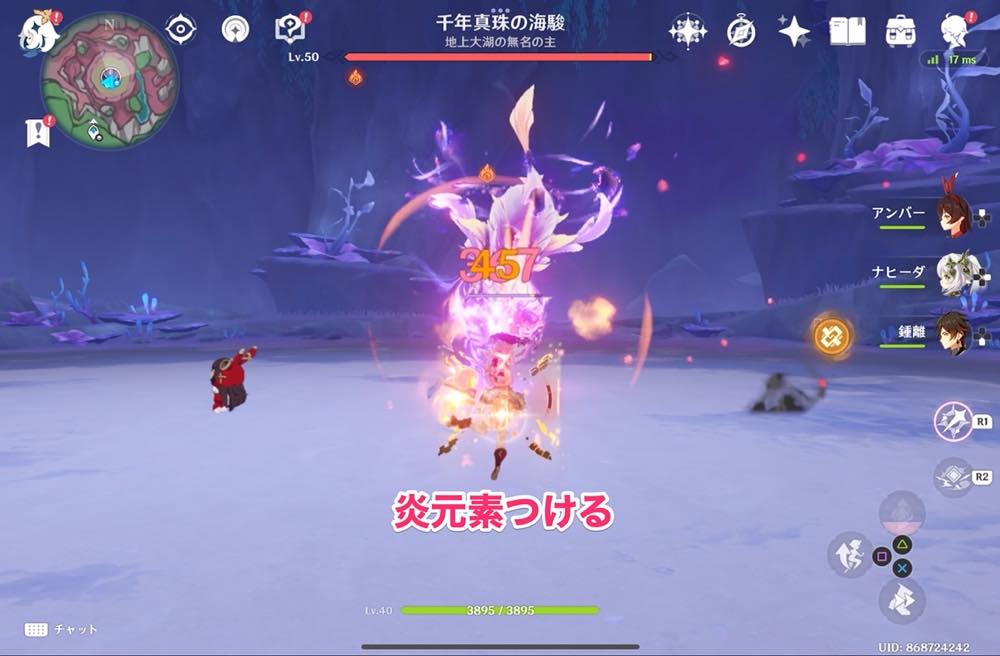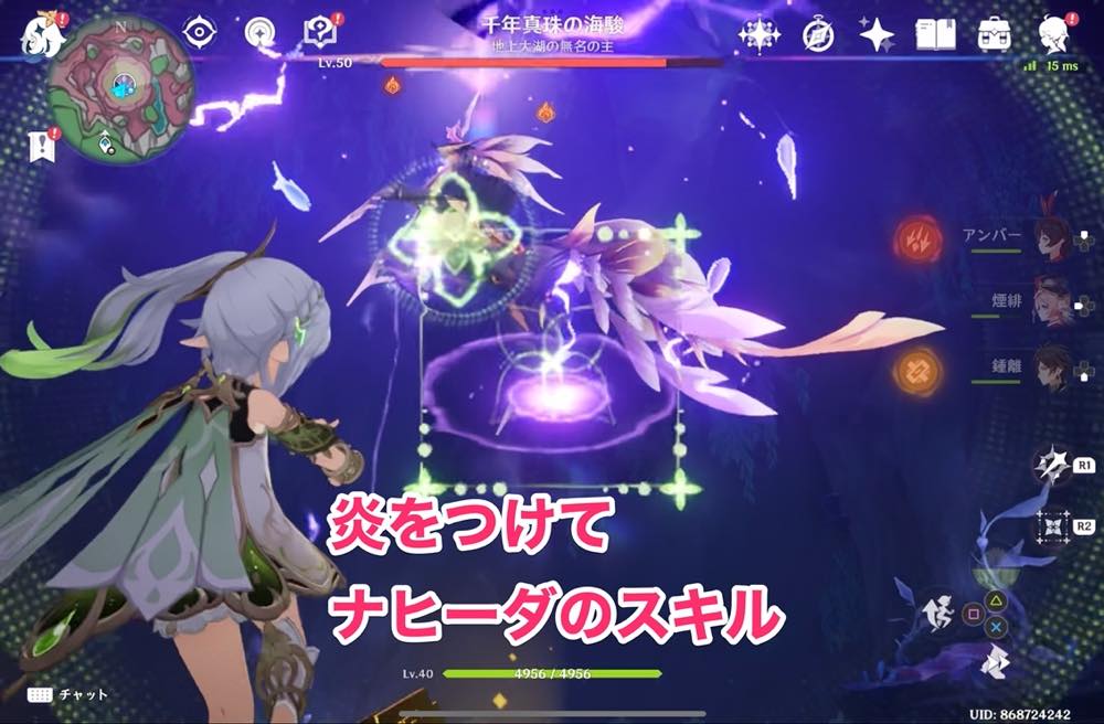| ⑨ | ![]() 炎を付けて、ナヒーダのスキルを撃つ |