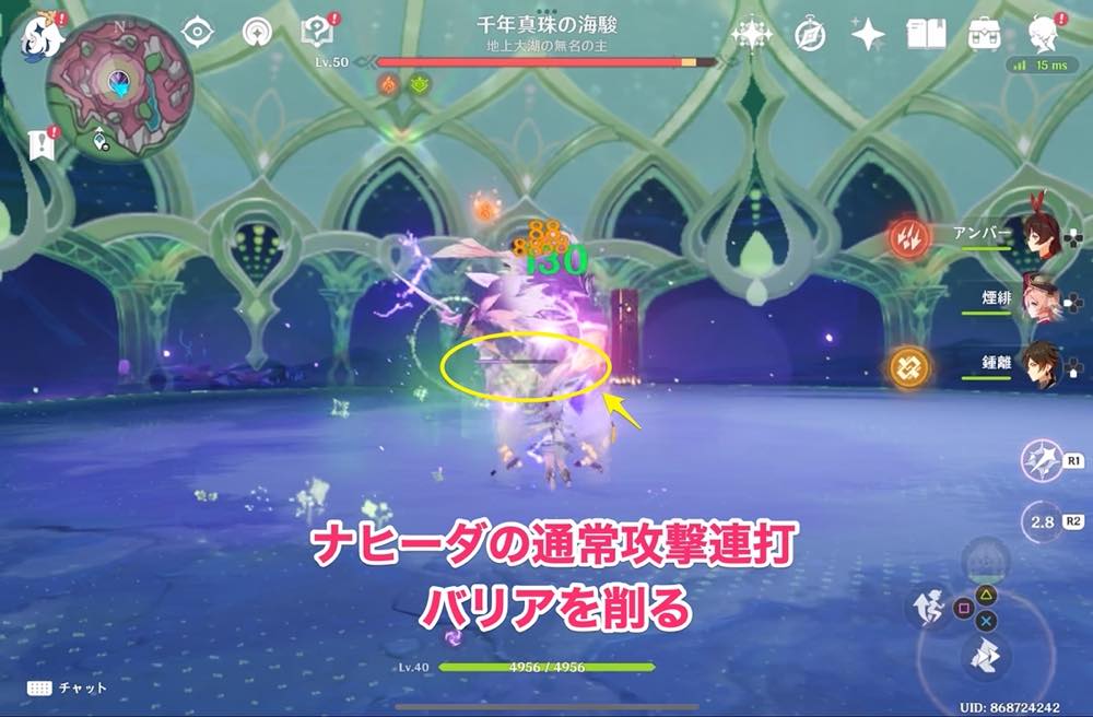 | ⑦ | ![]() ナヒーダの通常攻撃連打でバリアを削る バリアが壊れないギリギリを目指そう |