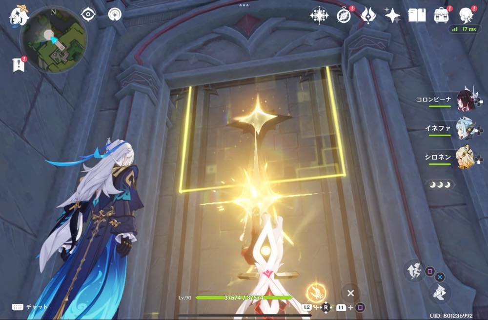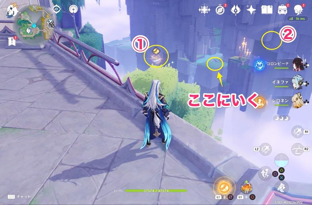 | ② | ![]() 右を向いて、①②の光珠を使い、「ここにいく」の場所へ |