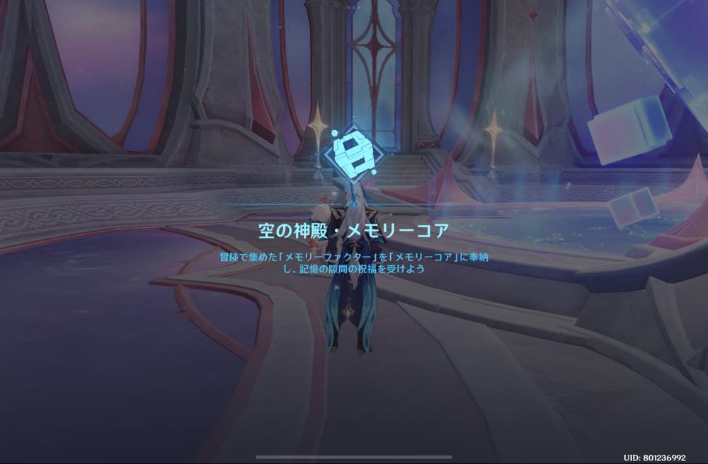 メモリーコアは「空の神殿 千柱中央エリア」にあります