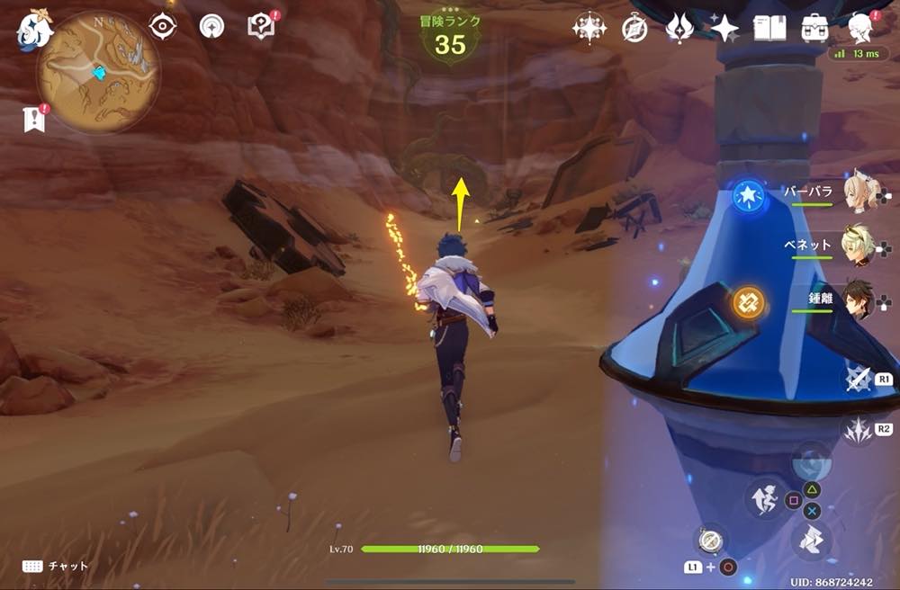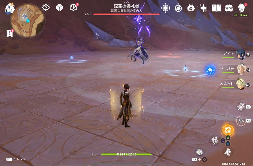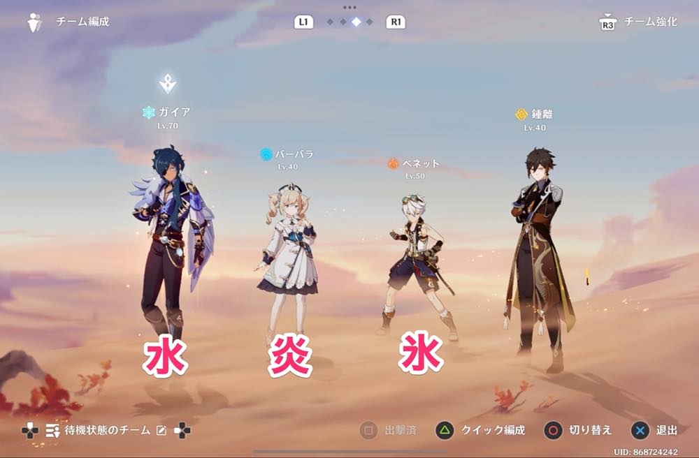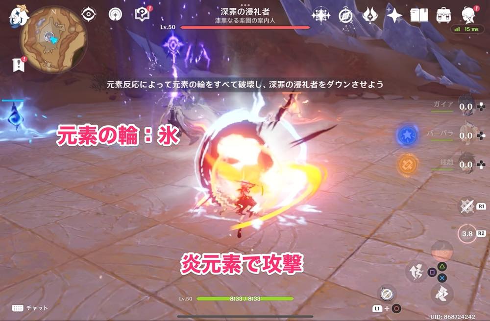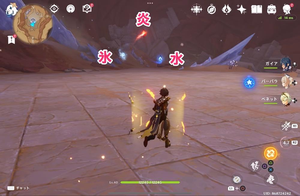 元素の輪:氷 → 炎元素で攻撃(ベネットのスキル)