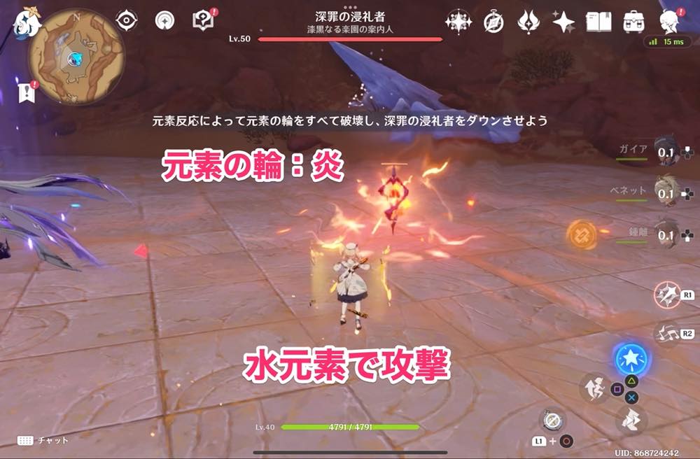 元素の輪:炎 → 水元素で攻撃