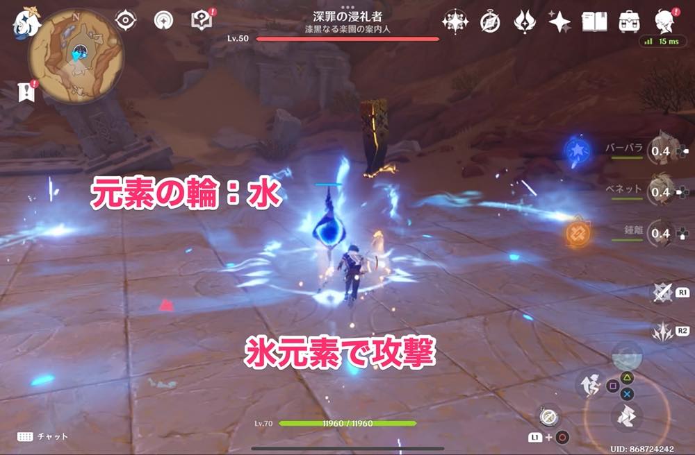 元素の輪:水 → 氷元素で攻撃