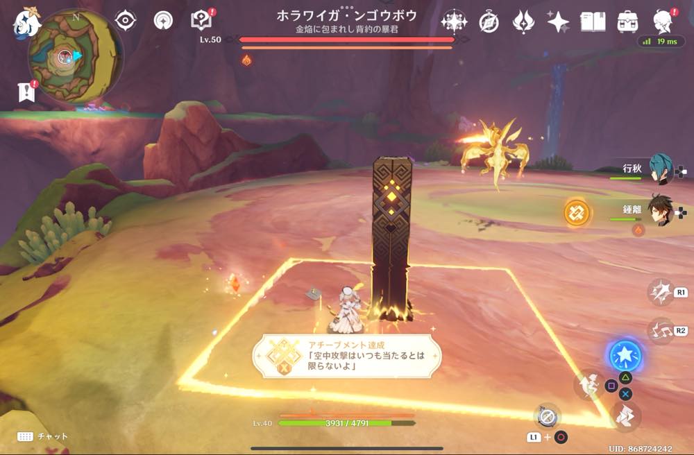 原神のアチーブメント 「空中攻撃はいつも当たるとは限らないよ」 の獲得方法を紹介しています
