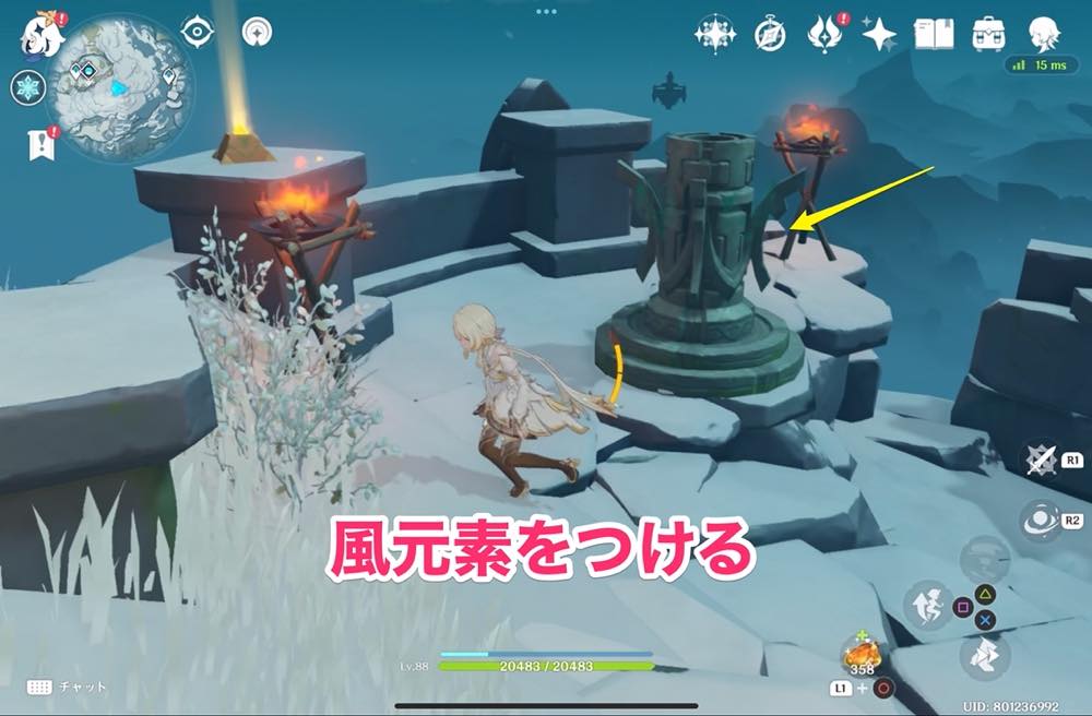 | ⑦ | ![]() 風元素をつけて、飛ぶ |