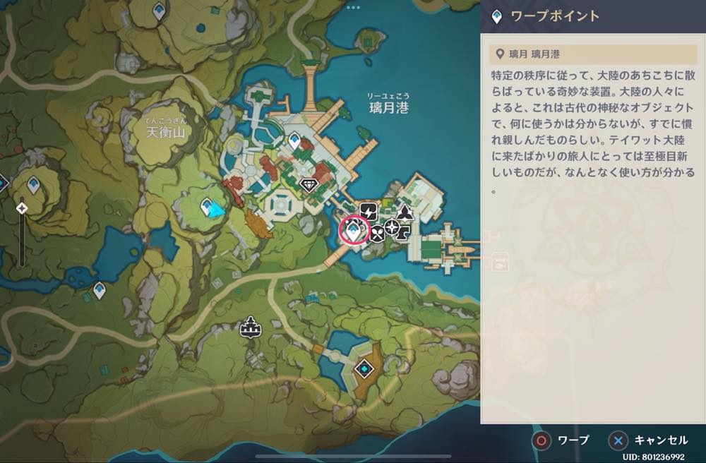 | ① | ![]() ワープする (青文字付きのNPCなら誰でもOK) |