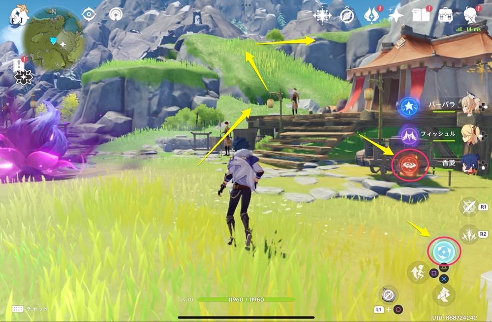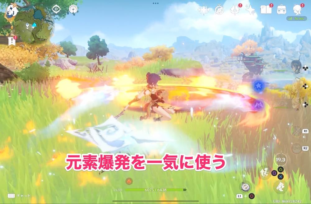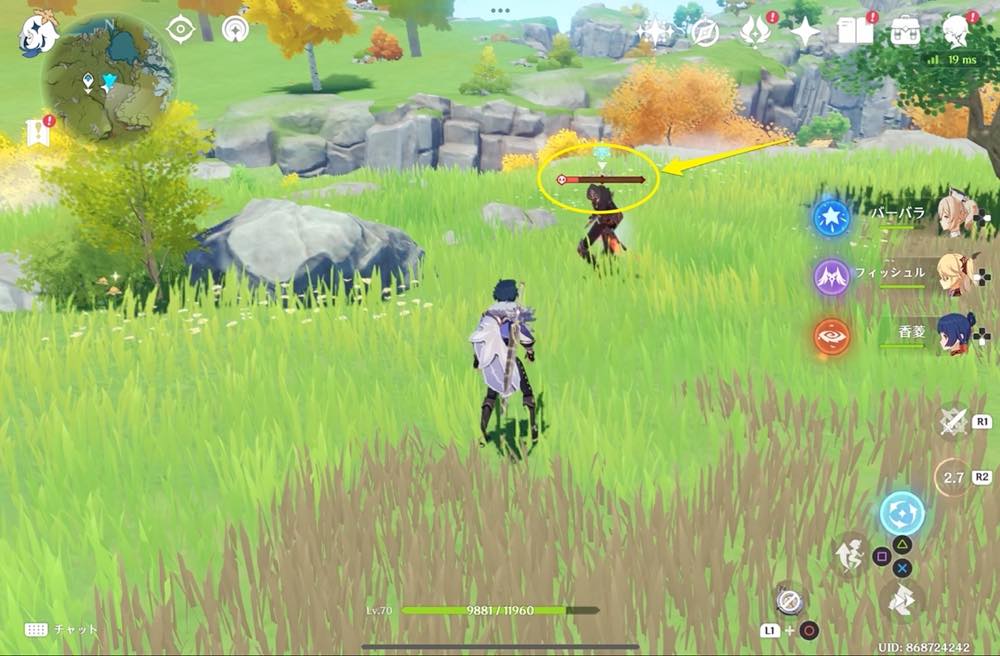 | ② | ![]() 元素爆発をためてから挑もう ガイアとシャンリンの爆発おすすめ 矢印の方へすすむ |
