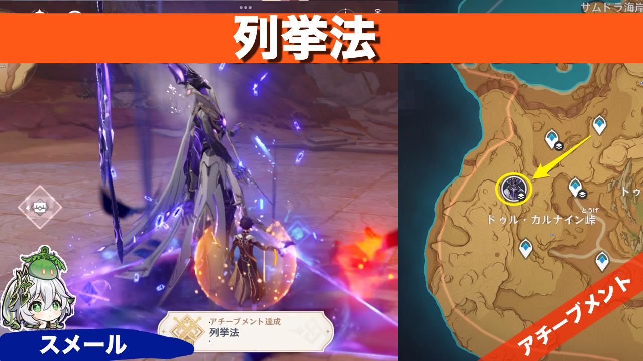 原神のアチーブメント 列挙法 の獲得方法を紹介しています 情報 全体図 場所スメール・深罪の浸礼者クリア時間最短4日アチーブメント列挙法アチーブメント取り方すべての元素の組み合わせのボスを倒す 行き方 攻略 討伐1日目 ①ワープする②まっすぐすすむ... -