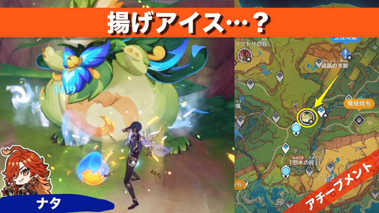 原神のアチーブメント 揚げアイス…? の獲得方法を紹介しています 情報 全体図 場所ナタ・山の王・貪食のユムカ竜クリア時間3分アチーブメント揚げアイス…?アチーブメント取り方一回の挑戦で、フレイムグレネードの実の爆発を利用してボスに溶解反応を起... -