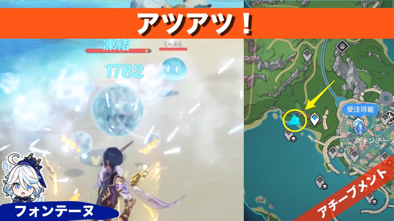原神のアチーブメント アツアツ! の獲得方法を紹介しています 情報 全体図 場所フォンテーヌ発生条件なしクリア時間3分アチーブメントアツアツ!アチーブメント取り方濁水幻霊を凍らせようと試し続ける 行き方 攻略 ①氷元素を付けれるキャラを連れて行こ... -