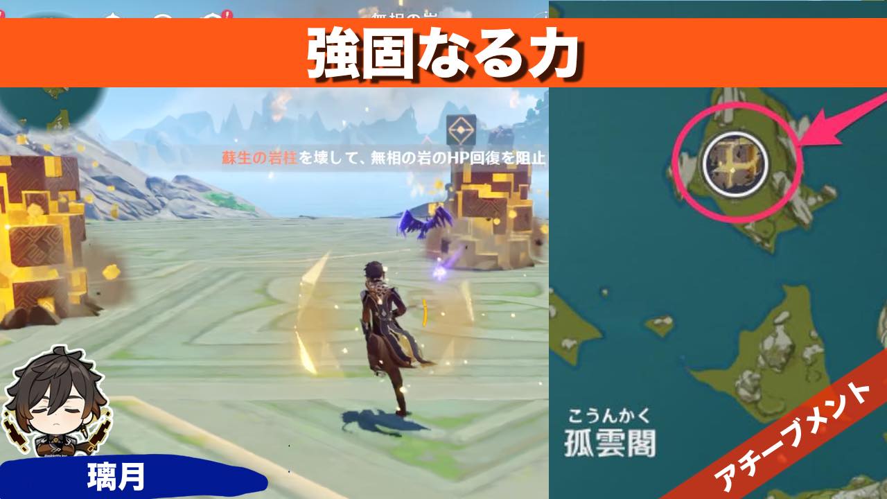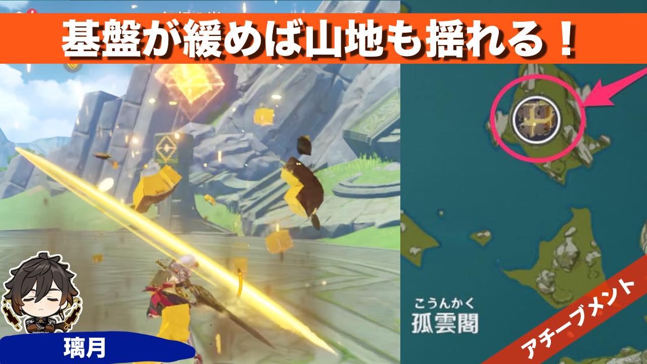 原神のアチーブメント 基盤が緩めば山地も揺れる! について紹介しています 場所 場所璃月・無相の岩発生条件なしクリア時間5分アチーブメント基盤が緩めば山地も揺れる!アチーブメント取り方コアが止まっている玄岩柱を破壊し、同じ無相の岩を3回撃ち...