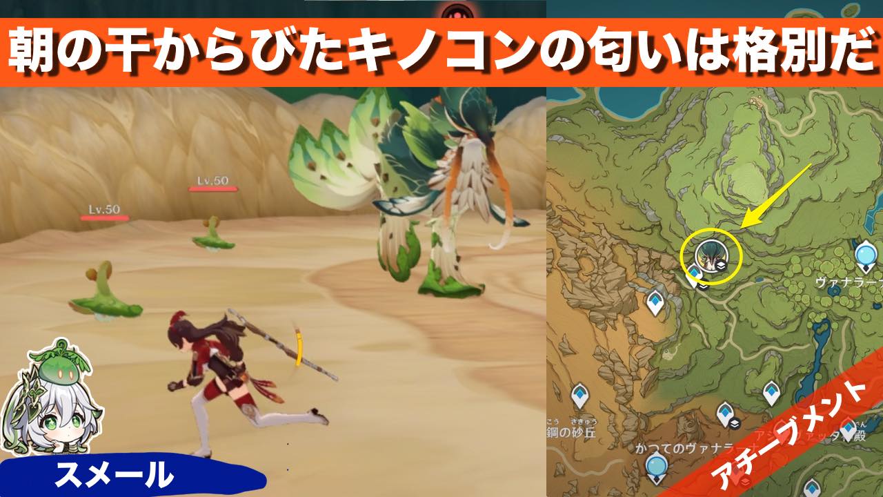 原神のアチーブメント 朝の干からびたキノコンの匂いは格別だ の獲得方法を紹介しています 情報 全体図 場所スメール・マッシュラプトル発生条件なしクリア時間3分アチーブメント朝の干からびたキノコンの匂いは格別だアチーブメント取り方マッシュラプト... -