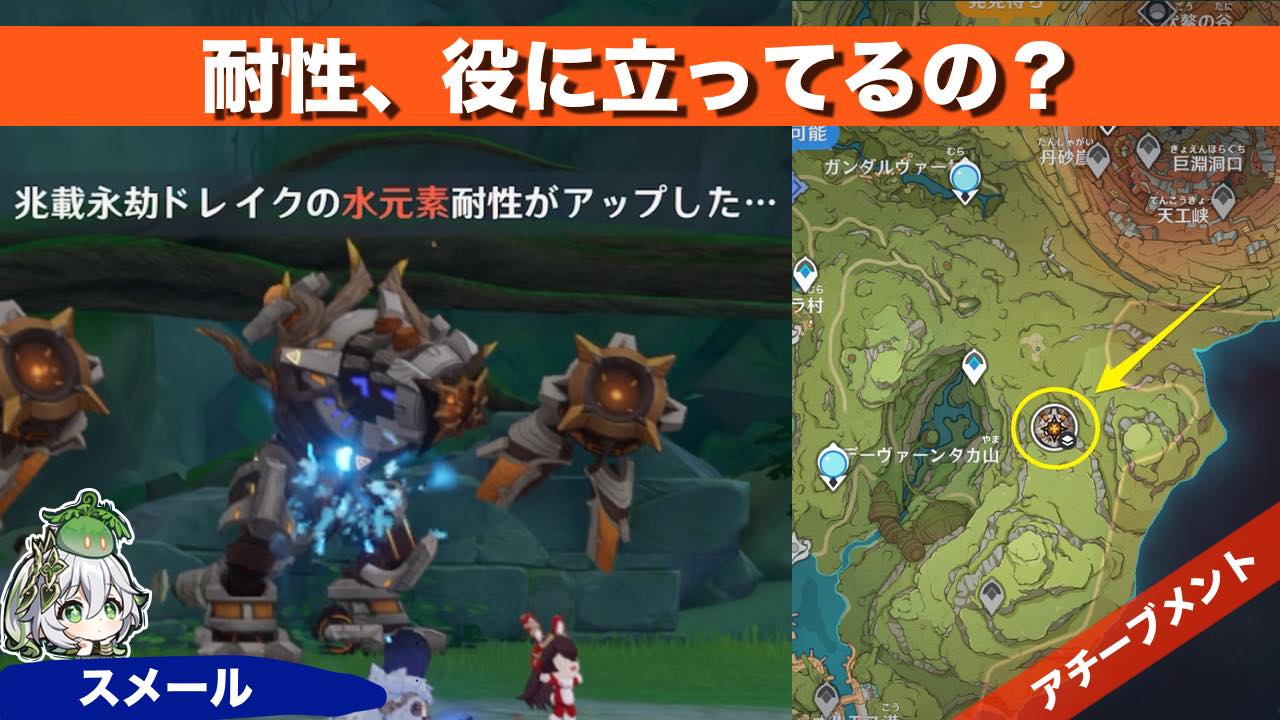 原神のアチーブメント 耐性、役に立ってるの? の獲得方法を紹介しています 情報 全体図 場所スメール・兆載永劫ドレイク発生条件なしクリア時間5分アチーブメント耐性、役に立ってるの?アチーブメント取り方2種類以上の元素耐性を上げたことのある兆載...